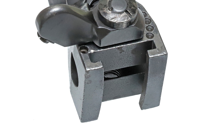写真左側へ0.5mmほど動かした状態。ネジを緩める照準調整は武器係の担当であり、一般兵が行うことは禁止されている。