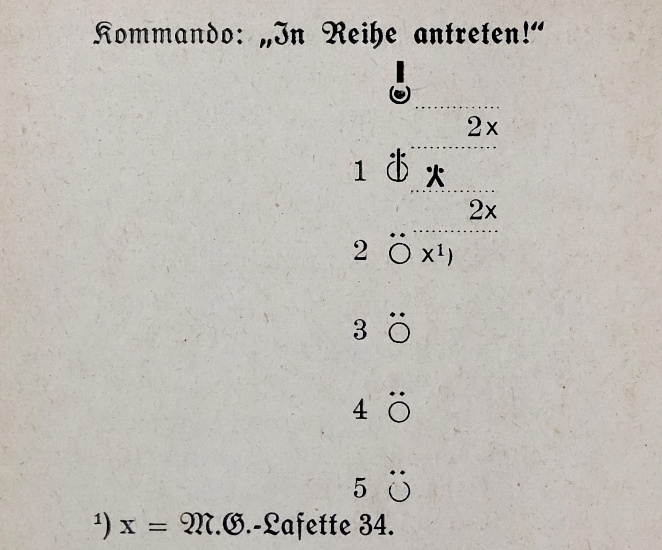 第2小隊 M.G.の弾薬荷役動物はベルトリンク装弾器の代わりに M.G. 用の小型予備箱を運び、第4小隊 M.G.の場合はベルトリンク装弾器の代わりに M.G.-ラフェッテ34用の小型予備箱、さらに M.G. 用弾薬箱の代わりに武器係用の小型工具箱を運搬する。
