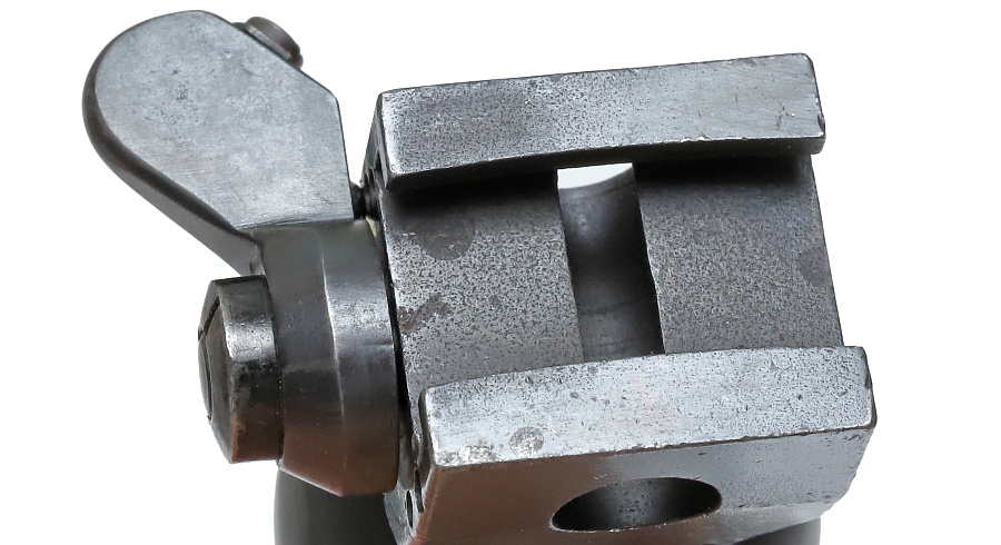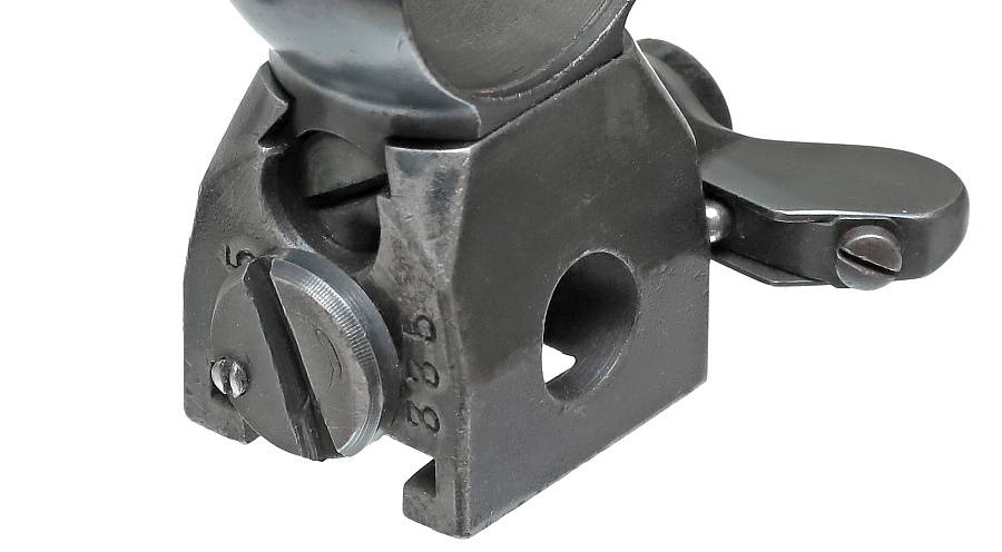 写真左側へ0.5mmほど動かした状態。ネジを緩める照準調整は武器係の担当であり、一般兵が行うことは禁止されている。