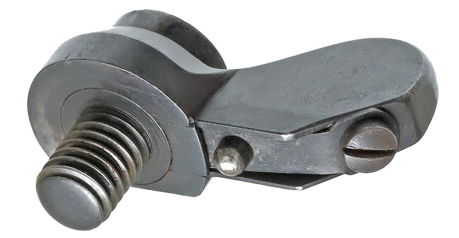マウントレールと嵌合した支柱をロックするレバー。レバー基部がDカット形状になっており、時計回りに回転させるとロックする。