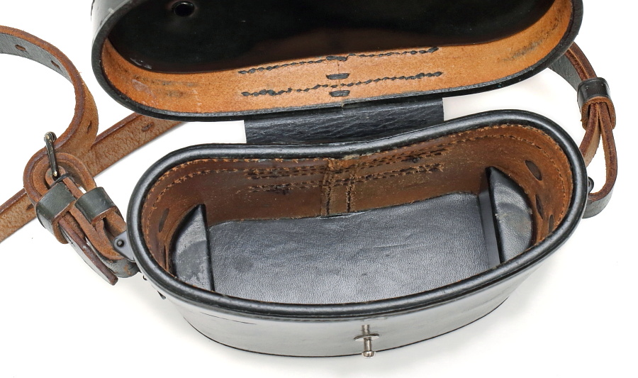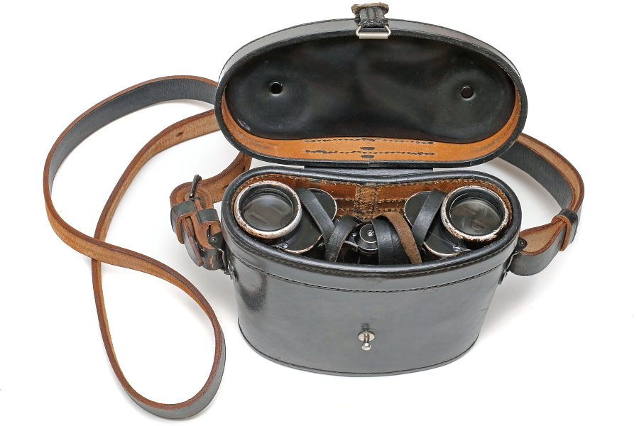 双眼鏡収納ケースは生産時期やメーカーによって形状や材質が変わる。掲載品は1930年代中頃に生産されたと思われる革製ケース。上質な光沢を持つ革を使い細部まで丁寧に作られた美しい仕上がり。