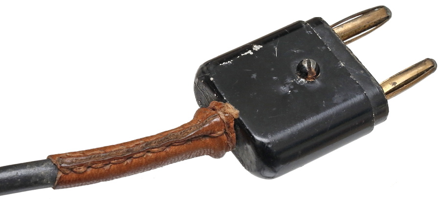 プラグの端子は左右で太さが異なっているため、差し込む向きが決まっている。本体はベークライト樹脂製で外側を金属製ケースが覆っている。コードの基部には保護用の革が巻かれている。