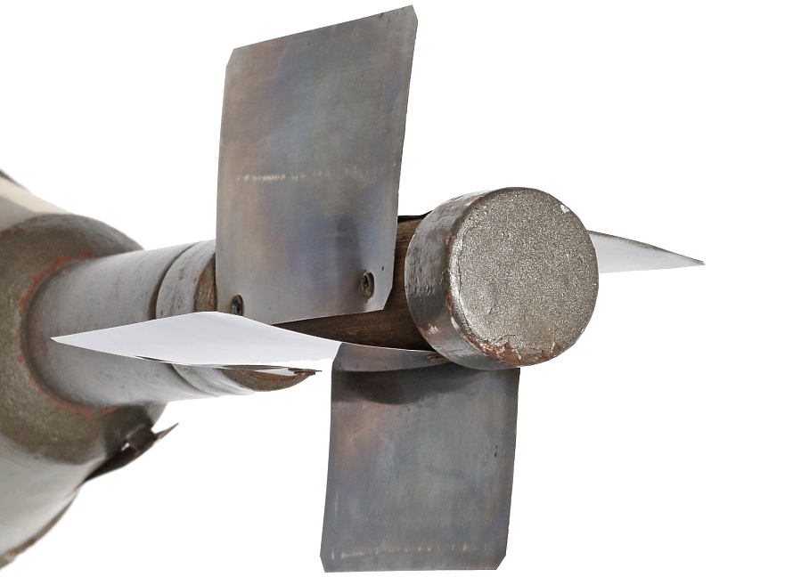 弾頭後部は木製。安定翼は木製部品にリベット固定されている。