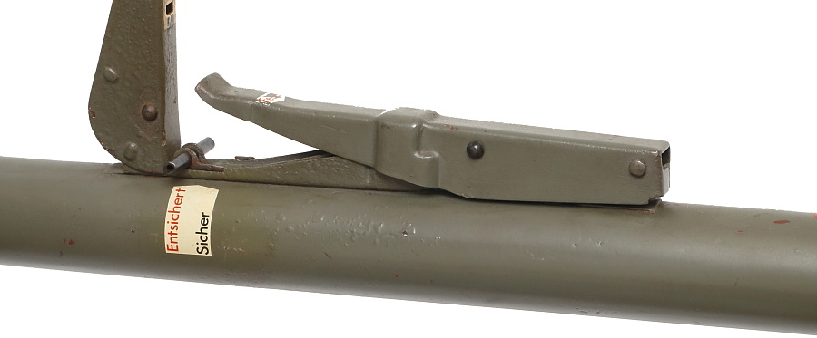 レバーをスライドさせて「Entsichert」(安全解除)の位置に動かすと、発射レバーのロックが解除。発射準備が整う。