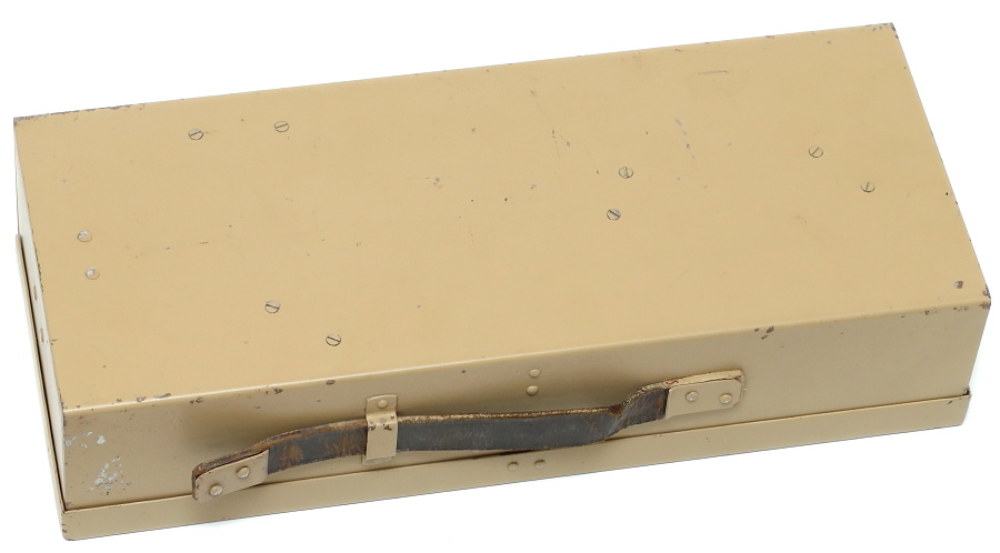 車載時には不要となるフロントサイト/2脚取り付けアダプター、バットストック、2脚を収納するための専用箱。通常は戦車内の側壁ラックに装備されており、必要に応じて取り外し車外へ持ち出す。厚さ約1㎜のプレス製スチール板を使い、スポット溶接で箱型に組み立て。箱側面や底面にあるマイナスネジやリベットは内部の木製ブロック固定用。フタは丁番で接続されており開閉する。