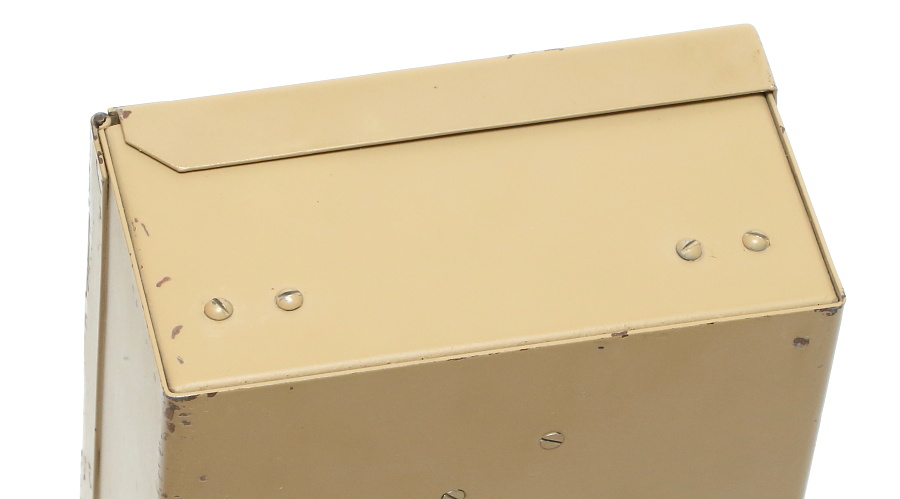 フタの表面には「MG.- Zubehör」(機関銃 付属品)の文字がステンシル塗装されている。通常は丁寧に塗分けられる「b」や「e」の内側が塗りつぶされている。