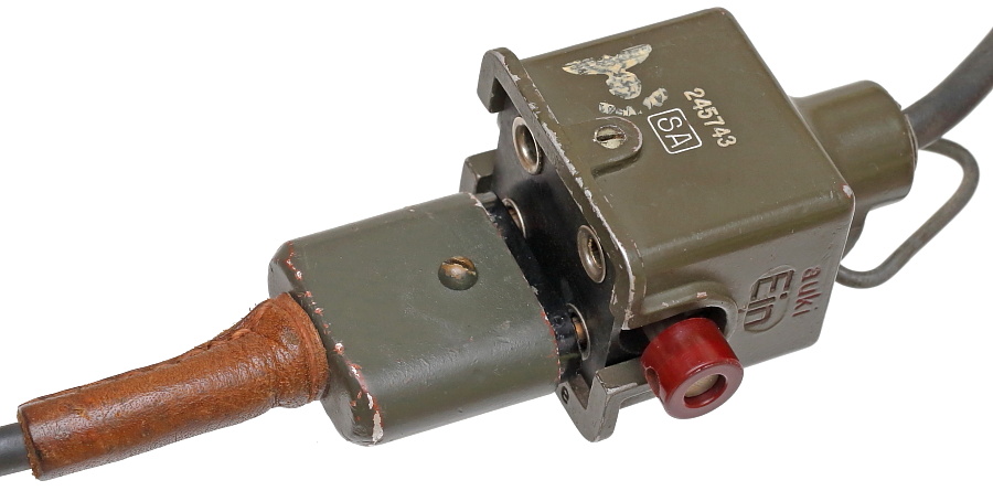 4.5V平型乾電池の収納ケースから供給される電気を2分配し、レティクル照明装置と小型照明装置を同時に使用することができる電気分配器。フィンランド軍を示す「SA」刻印があることから、この電気分配器は第二次大戦中にドイツで生産されフィンランド軍へ供与、または売却された品である。