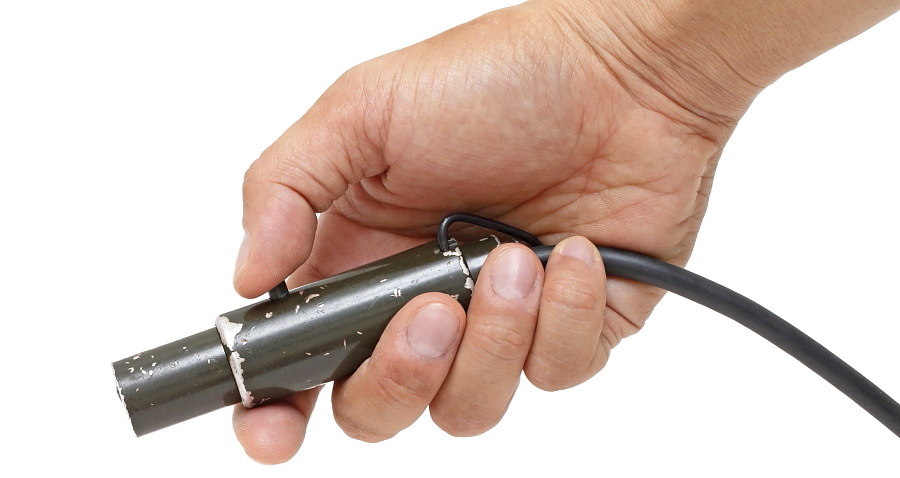夜間に手元などの近距離を照らすための照明装置。本体側面の小さなボタンが点灯スイッチとなっており、スイッチを押している間だけ点灯する。