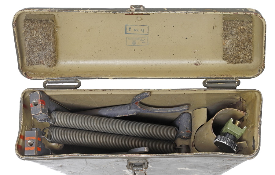 右肩用のフレームには「FürEm1mR36」(1メートル測距儀R36用)のプレートと「326」のアムト刻印がある。2本と1本の赤線はそれぞれ右用と左用を表し、運搬ケースにも同じ赤線が書かれており収納位置が分かるようになっている。