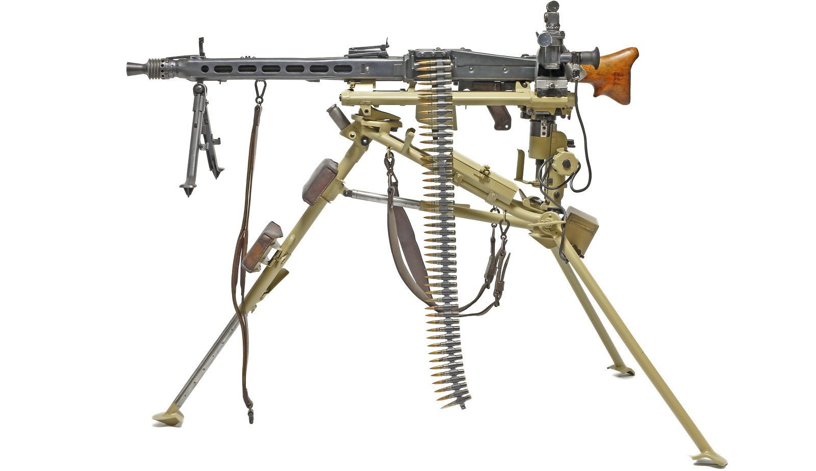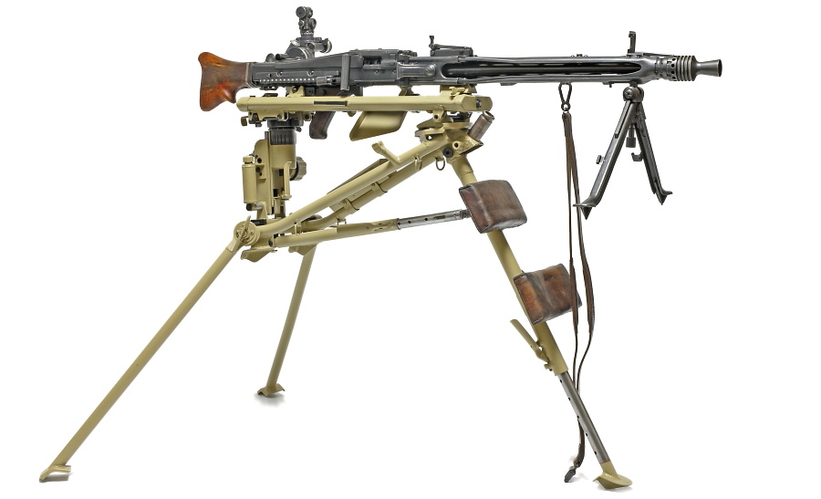 ここでは負い革、50連弾帯、光学照準器のレティクル照明装置と電池ケースを取り付けた実際の使用状況に即した状態を示す。