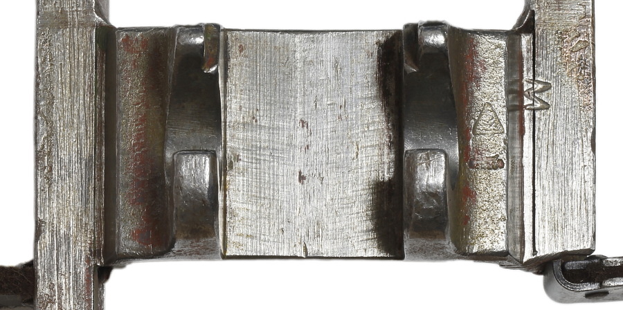 MG34の後部を固定するマウント金具を上から撮影。ここにも「200」のアムトと三角マーク。さらに「M」のような刻印も確認できる。