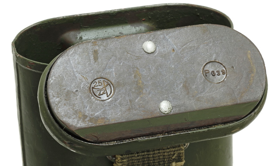 MG34の予備銃身を2本収納できるケースは主に戦闘車輌や射撃陣地の備品として使用されていたが、兵士が携行している場面も見られる。ここで紹介するケースは第二次大戦中にドイツで生産されたオリジナルであるが、塗膜は金属地→赤茶のプライマー→ジャーマングレイ→ダークグリーンの順となっており、最上部のグリーンは戦中のリペイントではなく、戦後に塗装された可能性が高い。どこかにあるはずの刻印も塗膜に埋もれ確認できない。
