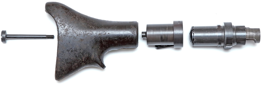 ベークライト製ストックは肩当て部が別部品となっており、ネジを通すスペーサー(木製?)が内部に収まる。