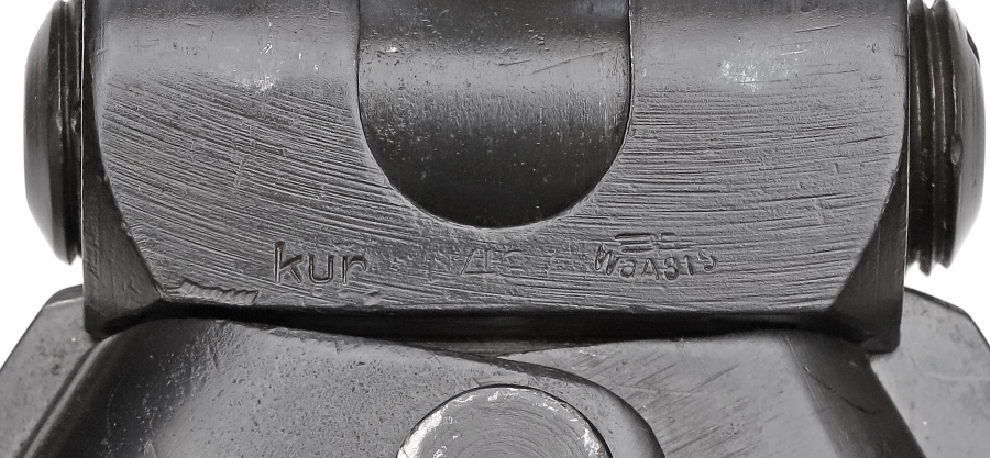 こちらは1943年にシュタイヤー社で製造されたMG42用の2脚。脚はMG34用の部品を流用しており、2脚収納時の固定金具を通す四角い穴がそのまま残っている。
