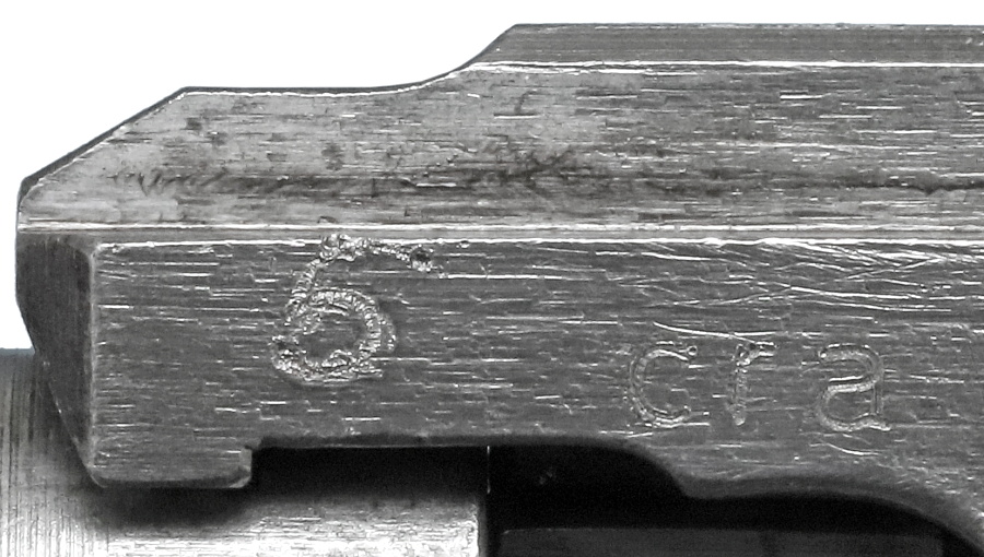 こちらは別個体のMG42ボルト。各刻印はそれぞれ何を意味するものかほとんど不明であるが、「cra」はMG42を生産していたマゲット社の製造メーカーコード。