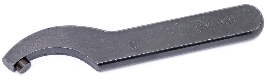 MG42の消炎器を取り外す際に使用する専用工具。手元にあるMG42は手の力だけで消炎器が取り外し可能であるが、射撃後の汚れが付着した状態や個体差で固いものの取り外しにはこの工具が必要になるようだ。本体はスチール削り出しで頑丈すぎる作り。