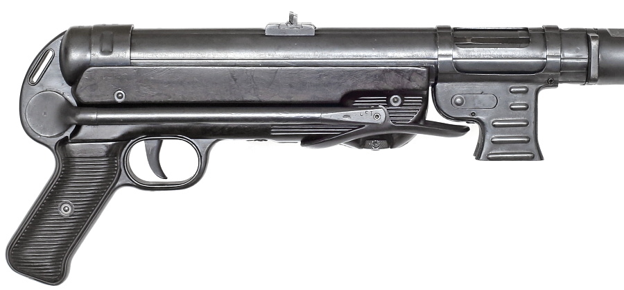 MP40は重量のあるボルト(単体重量420g)とややテンションが強いリコイルスプリングの採用により、9㎜パラベラム弾の反動をストレートに受ける単純なブローバック方式を採用。ロッキング機構などが無く、ボルト形状もシンプル。