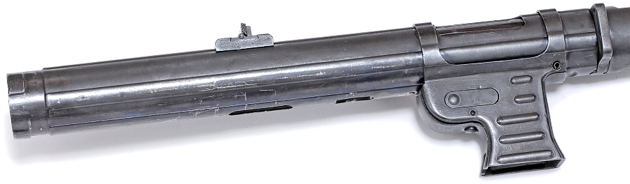 後部から見るとレシーバーの断面は円形であることがよくわかる。レシーバー本体は厚さ約1.3㎜のスチール板から製作されている。
