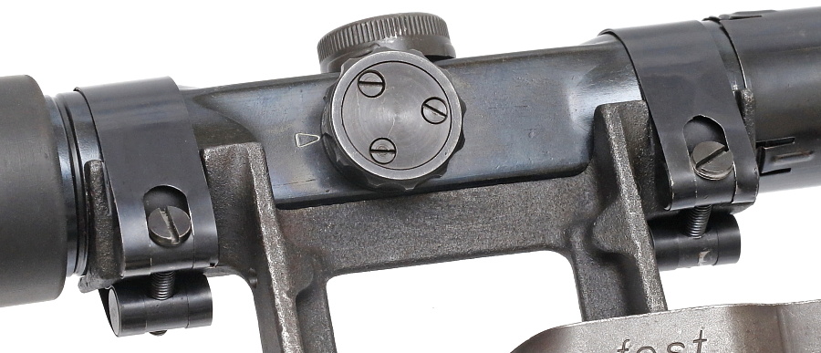ZF4はボルトハンドルの邪魔にならぬよう右にオフセットした位置に装着される。スコープの全長が短いので5発クリップを使った場合の再装填も容易。銃付属のアイアンサイトは使えない。